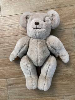 Hand made teddy bear with joined arms and legs. Sit dimention is 14". Firmley stuffed.