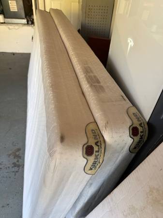 These started making noise, so they had to go. They are two twin box springs; that come together to make a king bed. They are well used, and will be thrown in the trash soon. But in case somebody...