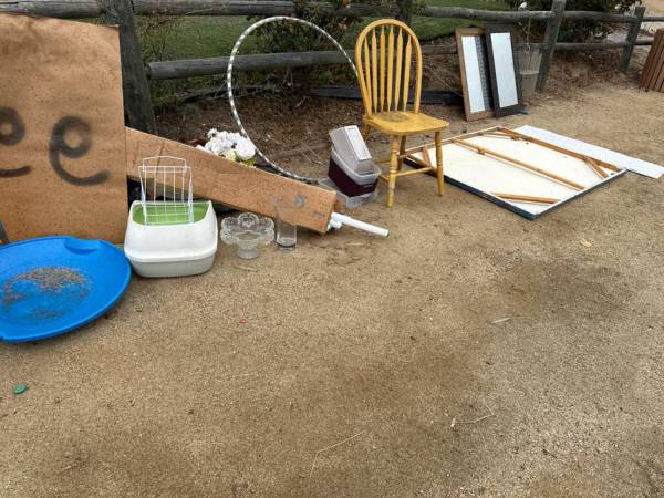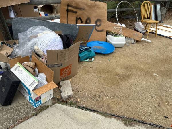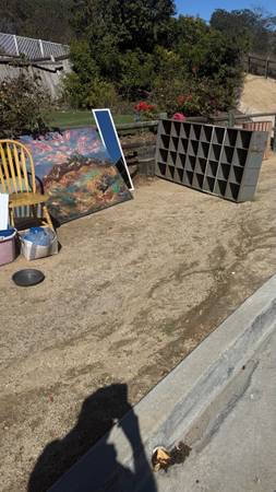 Free stuff on the curb 2 refrigerators Metal shelves Chairs painting clothes and more First come first serve