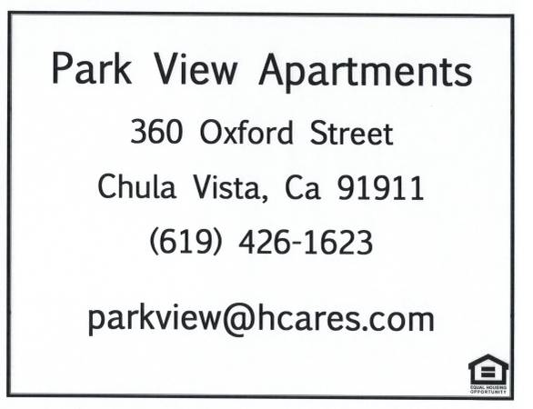 Welcome home to the Park View Apartments located in the heart of Chula Vista! Our pet-friendly 1- and 2-bedroom apartments have high speed internet access, walk in closets (select apartments), air conditioning units, spacious closets, ceiling fans, and more. Enjoy online rent payment options, on-site laundry facility, assigned parking, and our professional and friendly management and maintenance team. Come by or call today to make the Park View Apartments your new home!
