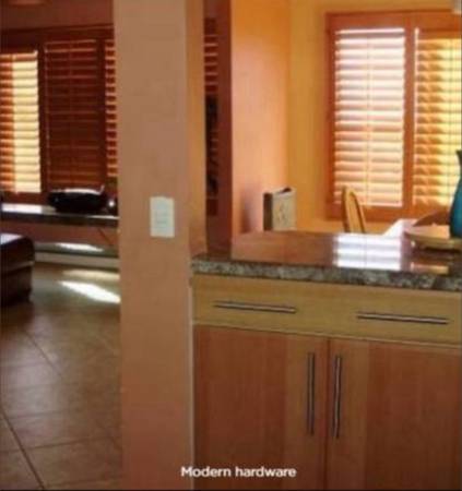 Internet and cable ready. Built-in desk area and shelves, drawers. Walk through closet in the master suite. Small yard and patio off of the master.