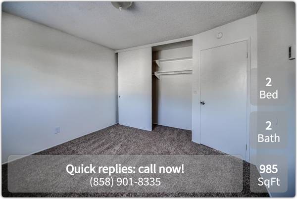 Description: Let the inviting waters of the resort-style pool at Mesa Vista Apartments welcome you home. Bask in the warm rays of the sun in the modern lounge furniture, while cooking a delicious picnic meal on a BBQ fit for a chef. Enjoy beautiful tree-lined streets in the surrounding neighborhood while being minutes from all the shops, café's and restaurants the Clairemont Mesa district has to offer. Try a Thai tea at Boba Time, don't miss the Banh Mi at K's Sandwiches, or enjoy the unique food service as you grab a sushi roll from the conveyor belt at Kura Revolving Sushi bar.