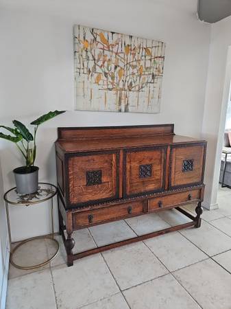 Very beautiful piece . It's crack but still look very nice. 59 L x 20 1/2 d x 45h