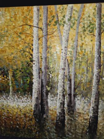 Aspen Trees Forest Faux Canvas Painting Picture $40 like new condition from kirkland's home length: 27 1/2" width: 55" aspen trees. forest. art. artwork. painting. canvas. picture. home decor. dorm...