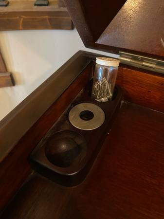 Upright 1915 Victor Talking Machine VV-XI “Victrola” in very good condition. Everything works as it should and sounds great. Has extra needles along with the original needle disposal tin. Original Victor key that works. Over 160 records included with names like Frank Sinatra, Dean Martin, Bing Crosby, Glenn Miller, etc. Although a beautiful piece, it does have some scratches on the finish, but disappear with tinted furniture polish. The exterior finish is a bit dull, but the mahogany still looks great. The interior finish is beautiful. Use as is or refinish. I like it as is. See pictures for condition. $1400 for the player, all records, and hardware/accessories.