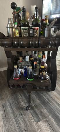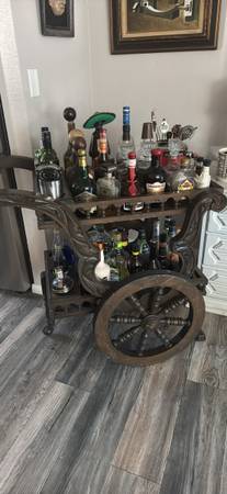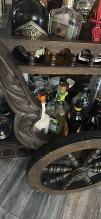 Will include everything on it as well Hand carved wooden bar cart with moving wheels. Been in my family over 60 years. I hate to sell it but need to pay for vet bills $750 No! I will not sell for...