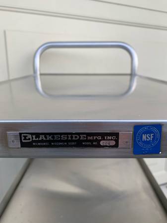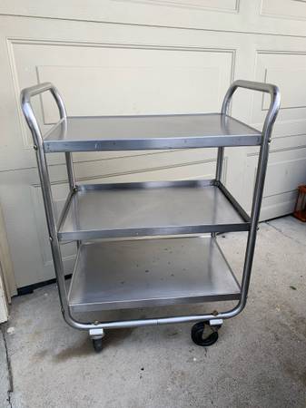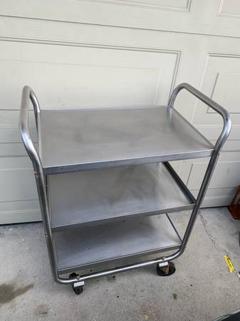 Hello, I am selling my Lakeside 211 Tubular Frame Utility Cart with 3 Shelves. It is in excellent condition. Safely transport up to 500 lb. of dirty dishes and restaurant supplies throughout your establishment with this Lakeside 211 stainless steel three shelf tubular utility cart! The tubular, U-shaped design provides durability and its reinforced edges provide extra strength for heavy loads, making this cart a perfect addition to any demanding restaurant environment! Dual handles allow for pushing from either end when narrow spaces restrict turns, and its 4", all-swivel casters make for easy maneuverability. Its 15 1/2" x 24" shelves provide ample space for storage, and the 9 1/2" clearance between each shelf provides the versatility necessary for the everyday fast-paced environment. Dimensions are: 27"W x 17-1/2"D x 35-3/4"H, shelf size 24"W x 15-1/2"D. I am asking $300 for it. Check out my other items.