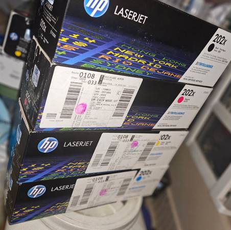 Selling a full set of four (4) genuine HP 202X high-yield toner cartridges. These are brand new, unopened, and still sealed in their original boxes. Perfect for stocking up your office!