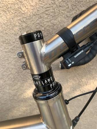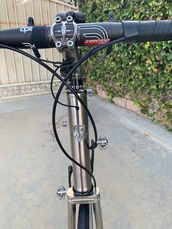 This is a custom made titanium tandem crafted by TiCycles of Portland, Oregon. All parts are crafted by TiCycles made of Zwei titanium tubing. This bicycle had been meticulously maintained. Included are a bike rack (titanium tubing) for a Topeak rack system (see photos), and extra set of Continental Gatorskin 28mm tires and one set of pedals which are seen in the photos. Seat post for the captain is 61cm and for the stoker 53 cm. This specific bike is highlighted on the TiCycles website for comparison to these photos. This specific bicycle was entered into the 2017 NAHBS (North American Hand-Made Bike Show). I have the original spec sheet for this build. Price negotiable.