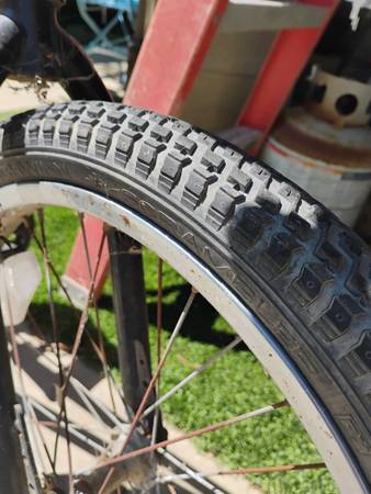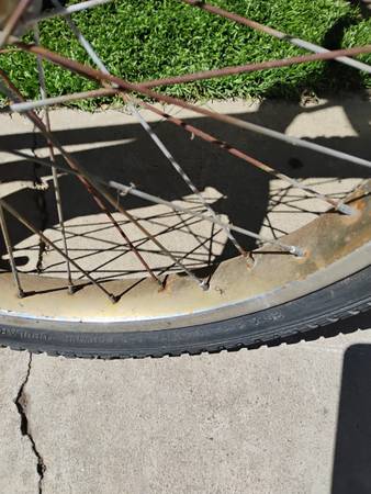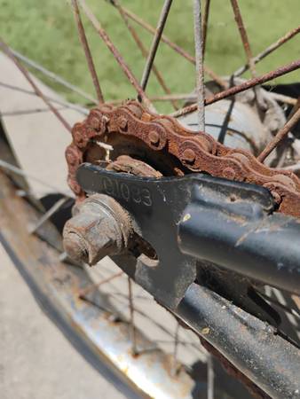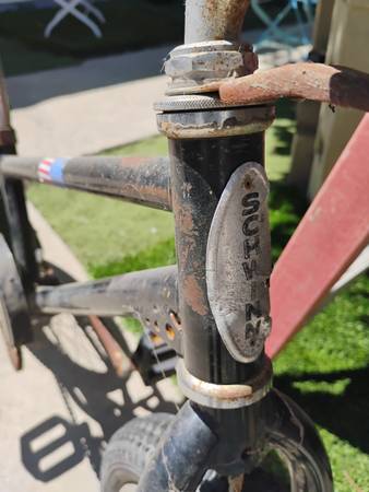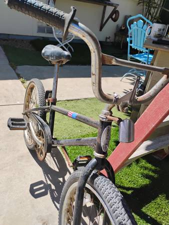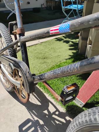 Been shed stored for 30 years and it shows. has alot of factory schwinn parts faded sticker on chain guard says THRASHER schwinn scrambler tires wheels and chainring appear to have been gold...