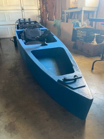 BRAND NEW, 12'-6" X 30" X 11", SIT-IN, 2-PIECE FISHING KAYAK. CONSTRUCTED OF EXPENSIVE 1/8" WATER RESISTENT PHILLIPINE MAHOGANY COVERED WITH FIBERGLAS CLOTH AND EPOXY RESIN. WEIGHT IS 65LBS. HAS ATTACHED HANDLES, BOTTOM RUNNERS, LOTS OF ROOM. ALSO AVAILABLE, PADDLE, WHEELS, FORWARD ROD HOLDER, MILK CASE WITH ROD HOLDERS, PADDED SEAT AND LIFE VEST. 4- 3/8" SS BOLTS HOLD THE 2 PIECES TOGETHER. PUBLISHED THE PLANS B00K IN 2008. THIS IS THE THIRD ONE I HAVE BUILT. HAVE ALSO BUILT DINGHYS, AND SMALL RUN-ABOUTS.