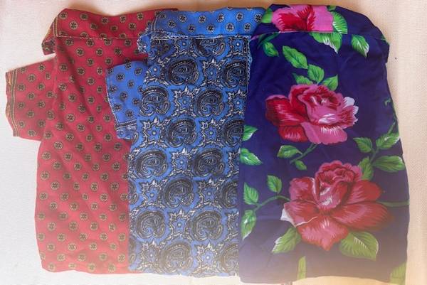 Colors: Blue, Red, Purple with floral/paisley prints