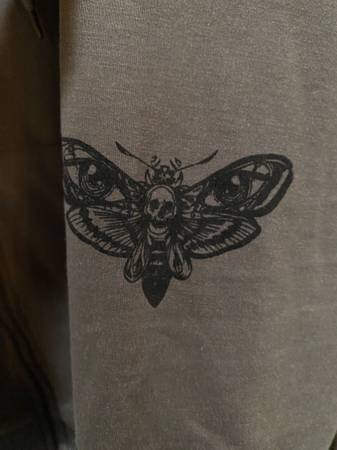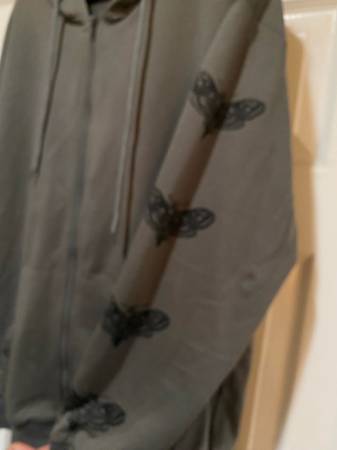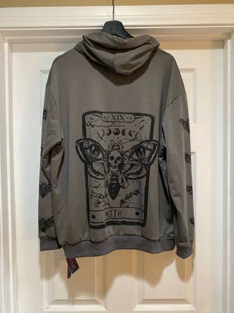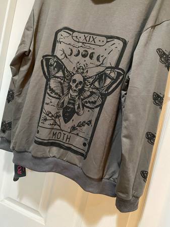 Has print on sleeves and back. New with tags. Gray. Size Large. $20