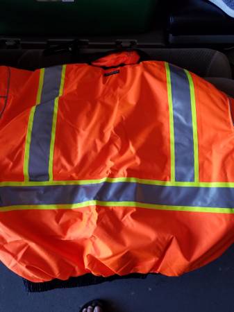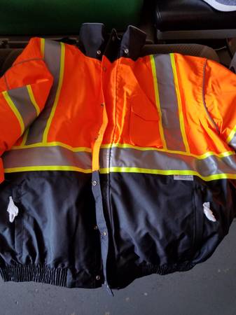 For sale Brand new heavy duty safety jacket by ML Kishigo size 2X , bright orange color, 3M reflective materials, tick padding/insulated. For more info