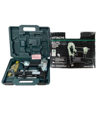 For sale, we have a hitachi 38mm pneumatic stapler, comes complete with the original hard case, safety glasses, manual, and accessories. Works perfectly and is ready for any upholstery, trim, or carpentry project. Clean, well-kept, and stored indoors. We’re open Monday thru Friday 8am to 4pm, then off on weekends. Thanks for looking! Consignment Alberto Bustamante.