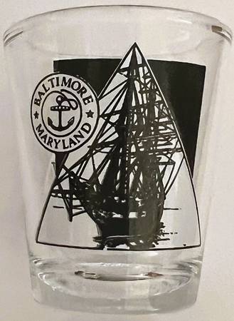 USS Frigate Constellation 1797 Commenmorative Shot Glass Baltimore, Maryland Never Used