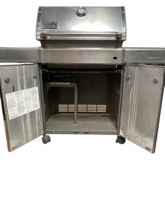 For sale, we have a Weber Genesis stainless steel gas grill. Solid, heavy-duty construction and built to last. It has side shelves, front storage cabinet, temperature gauge, and multiple burners for even cooking. It shows normal wear from outdoor use, but overall it’s a strong, quality grill. Great for backyard BBQs or anyone upgrading to a Weber. We’re open Monday thru Friday 8am to 4pm, then off on weekends. Thanks for looking!