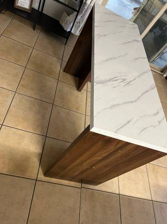 This is a brand new just built but has a ding in the top . It’s not a solid marble top only looks like it
