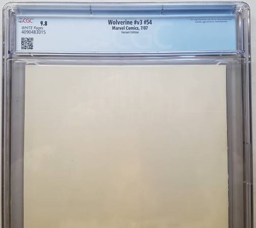 Check out this amazing Wolverine #54 B&W Variant CGC 9.8 2007 NEW 4090483015 from Marvel Comics! This certified, 9.8 Near Mint/Mint CGC graded comic book is perfect for fans of US Comics and Wolverine (Logan) alike. With a Single Unit sale format and black and white variant cover, this issue is a must-have for collectors. Don't miss out on this amazing opportunity to own a piece of modern comic book history with this Wolverine #54 comic book. Get it now!