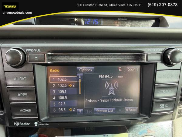 4-Cyl, 2.5 Liter, Automatic, 6-Spd, 2WD, Traction Control, Stability Control, ABS (4-Wheel), Keyless Entry, Air Conditioning, Power Windows, Power Door Locks, Cruise Control, Power Steering, Tilt & Telescoping Wheel, AM/FM Stereo, CD/MP3 (Single Disc), SiriusXM Satellite, Bluetooth Wireless, Entune, Backup Camera, Dual Air Bags, Side Air Bags, F&R Head Curtain Air Bags, Knee Air Bags, Moon Roof, Daytime Running Lights, Fog Lights, Rear Spoiler, Alloy Wheels