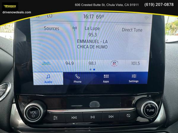3-Cyl, EcoBoost, Turbo, 1.0 Liter, Automatic, 6-Spd w/SelectShift, FWD, Ford Co-Pilot360 Assist, Hill Start Assist, Traction Control, AdvanceTrac, ABS (4-Wheel), Keyless Entry, Push Button Start, Air Conditioning, Power Windows, Power Door Locks, Cruise Control, Power Steering, Tilt & Telescoping Wheel, AM/FM Stereo, CD/MP3 (Single Disc), SiriusXM Satellite, SYNC, Reverse Sensing System, Backup Camera, Dual Air Bags, F&R Side Air Bags, F&R Head Curtain Air Bags, Knee Air Bags, Heated Seats, Power Seat, Moon Roof, Daytime Running Lights, Fog Lights, Alloy Wheels