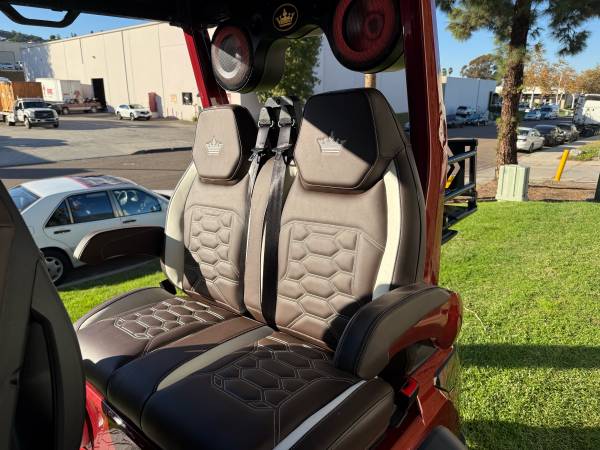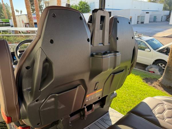 • Luxury Redefined for Six: Spacious yacht-style seats with three-point restraints keep your crew comfy and secure. Adjustable steering, premium brown interiors, and sliding air vents ensure every ride feels like first class. Plus, a dash refrigerator and portable cooler mean your adventures stay refreshingly cool.