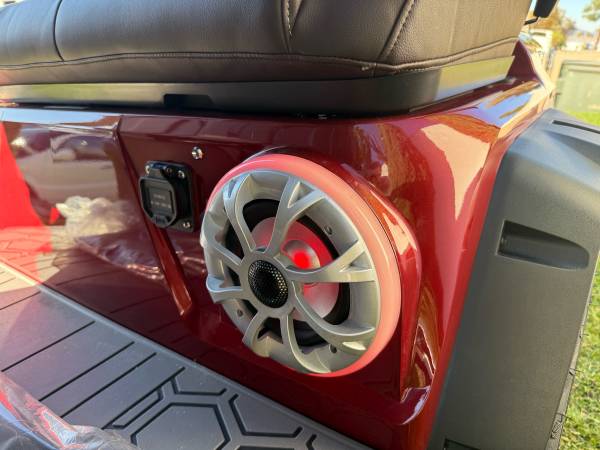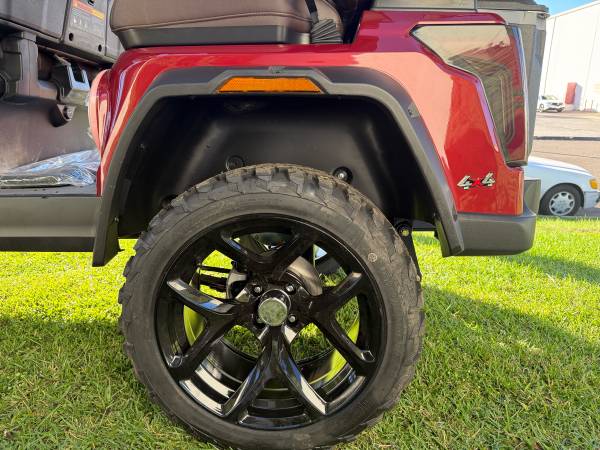 • Bold Flamenco Red Finish: This PPG-painted stunner in vibrant Flamenco Red (with optional orange wheels for extra flair) delivers a rugged yet elegant look. Foldable utility basket, 4 bag holders, and onboard charger make it as practical as it is photogenic.