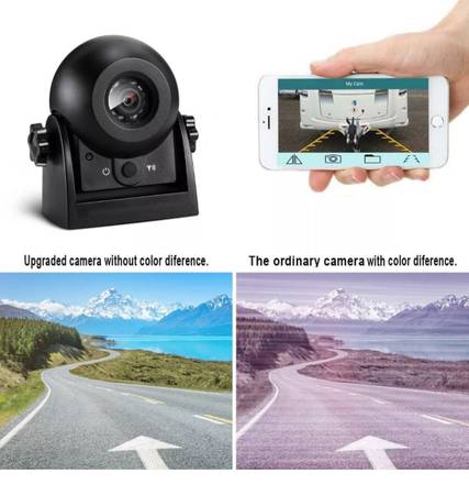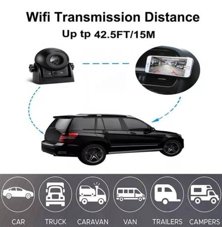 The wireless backup camera connects to your mobile device via WiFi, so that you can monitor the live image on your phone.