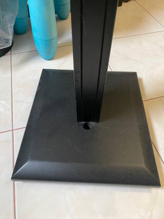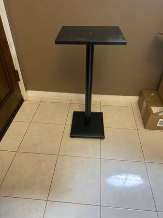 Satin black speaker stands in great shape.These are the older, heavier duty units with a 25lb./stand capacity (newer model has 20 lb. limit). Previously used for JBL L-100's on them (these are large, heavy bookshelf speakers). They have a slot on the neck for your speaker wires (speaker wiring only visible from amplifier to the base, after that the wiring is hidden in the neck going up to the speaker top shelf.