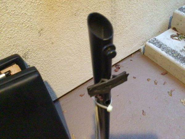 The small speaker can hook into the top of the posts. There is a 2nd small speaker that I am looking for. The bases of the posts appear to be concrete. Two are in tact and one base has 2 cracks in the concrete. That post is still stable as is. The receiver in the picture is no good. More info to be posted tomorrow or Tuesday.