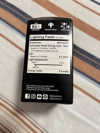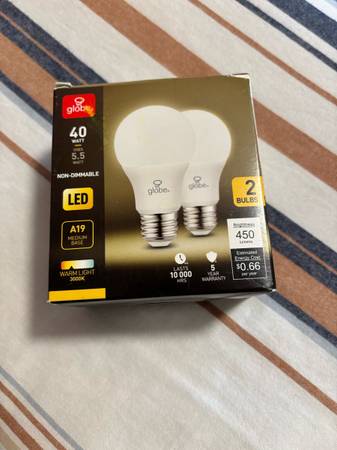 Globe Led Lightbulbs 2, Warm Light, 40 Watt new never used
