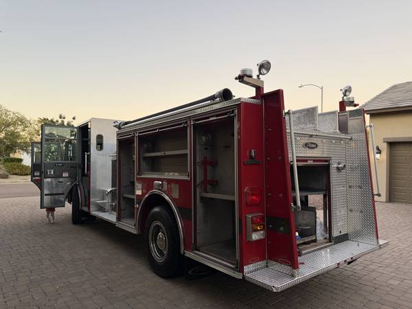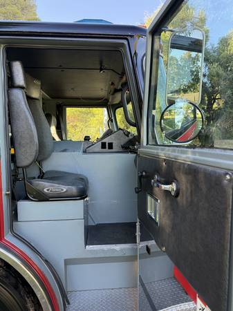 The powertrain is a literal POWERHOUSE. It has a Turbo Detroit Diesel Series 40 that is designed and rated to last 500,000-1,000,000 miles with proper service. Do some research on this legendary engine. It is mated with a tried and true Allison Transmission model that allows for Power Take Off cranks to power anything off the force of the engine. One transmission connection is already tapped into for the WATEROUS 1250 Gallons Per Minute Brass Centrifugal water pump and Heavy Duty Amperage generator/inverter. The Fire Chief that showed us the truck when we picked it up said the truck is still certified and ready for duty at the time of purchase! This unit was only sparingly used. They have full cast-brass internal Impellers. The generator offers power to the pump, various emergency light, surrounding scene lights, ground, cab, working intercom system, custom high powered light bar, and tool box lights. It has a breaker box built into one the of tool boxes. Lots of extra options on this unit such heated and power adjust side mirrors with blind spot section. The front bumper is equipped with an AMAZING AIR SIREN -- Federal Signal Q-Siren. It is also equipped with a HUGE “Waterous” brand pump with built in FOAM A/B Module. The built in ONE- THOUSAND GALLON Thick-Poly WATER TANK is huge but when the enormous pump is at full capacity is less than a minute of supply (1250GPM). There are big inlets and several outlets that give access to the 1000 gallons of on-board water allow for possibilities of repurposing vast - many use trucks like this to supply water, electrical power, tool storage, and even shelter in remote locations. There is an additional port built into the Allison transmission that allows another connection to the power of the diesel. Many use these trucks to establishment nurseries in rural properties to qualify for tax incentives, setting the 1000 gallon tank to drip water plants/trees. The tank and electrical source makes for great off-grid self sufficiency. It also makes for a great kids party service if you add foam and speakers for music for preschools, days cares, HOAs, etc. Great for use as a reserve fire truck when the wildfires come next. A lot of conversion options also; on or off-grid airbnb dwelling with large cab and water/electric, toy hauler, food truck 🔥, RV, the possibilities are endless with this industrial workhorse!