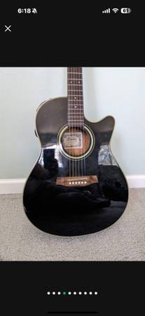 Black Ibanez electric acoustic guitar with a hard case ,Picks , Tuner, Etc