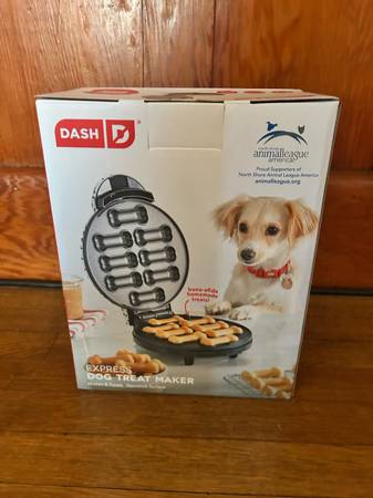 Countertop cooker comes with recipes for drool-worthy dog treats, including Peanut Butter Pumpkin, Cheddar Bacon, Chicken and Wild Rice, and Grain-Free Greenies
