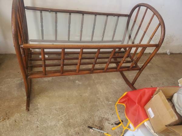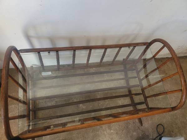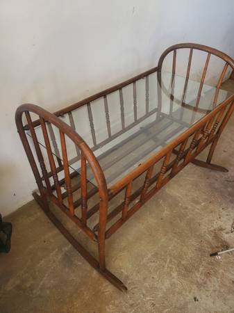 Antique full size doll crib with a glass top. You can put several baby dolls inside.