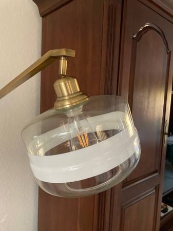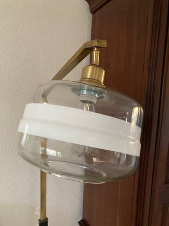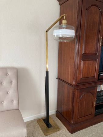 Sturdy, shade pivots to direct light and has a foot switch for on/off convenience. Purchased at Lamps Plus