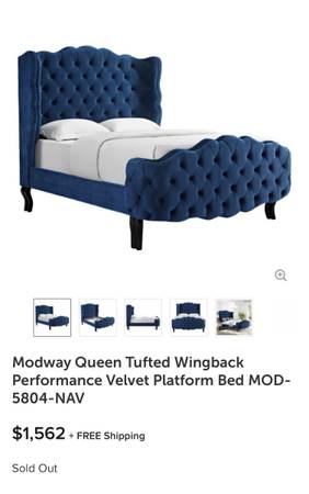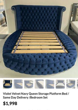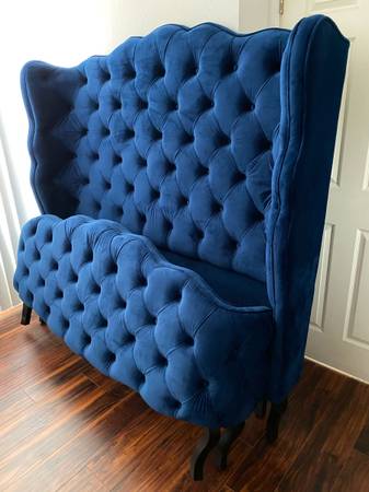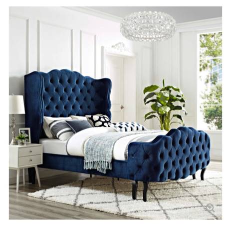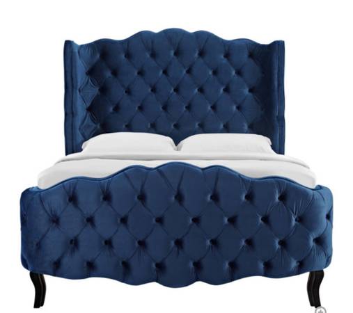 Gorgeous Brand New Queen Wingback Platform Bed in Tuffed Navy Blue -Victorian Style 💙✨ New in the box I paid around $1,700.00 Asking $1,300.00 OBO Excellent quality in materials Dimensions: 70in W x...