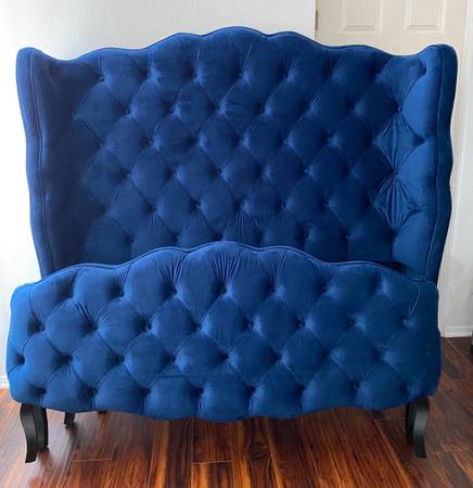 Gorgeous Brand New Queen Wingback Platform Bed in Tuffed Navy Blue...