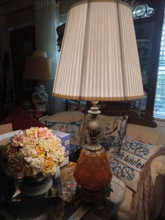Amber glass brass lamp