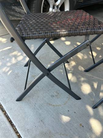 Upgrade your outdoor space with this 3-piece black wicker patio bistro set. Includes foldable table and 2 chairs. Perfect for balconies, porches, small patios, or apartment setups. Local pickup...