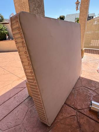 For sale Complete Set of Queen Size Bed by Simmons with box spring, bed frame, and Cherry wood headboard. For more info .