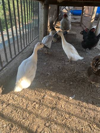 $75 each or $70 each if you buy more than one. I have a total of six Indian runner ducks for sale. All are females mostly white with blue bills and orange/grey feet. They were hatched at my homestead, hand raised, and fed a mixture of high quality game bird feed and flock raiser as well as fruit and veggie scraps. They are all about 7 months old and are starting to lay eggs.