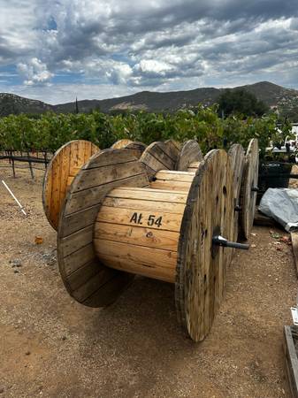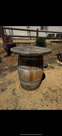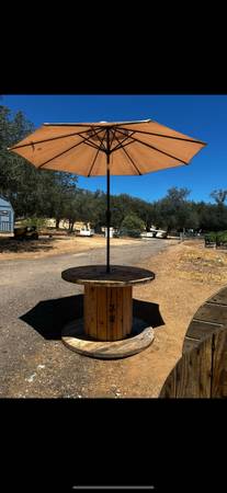 7 large Spool Tables with custom heavy duty umbrella holders & 2 Wine Barrel Tables. These tables will provide the perfect rustic platform for shaded wine tasting in your patio. Umbrellas not...