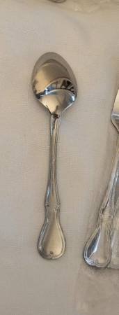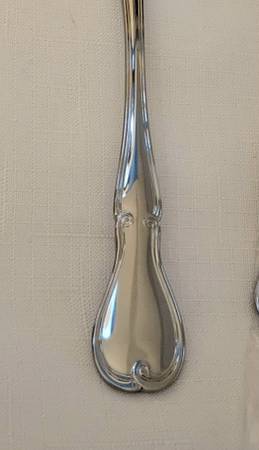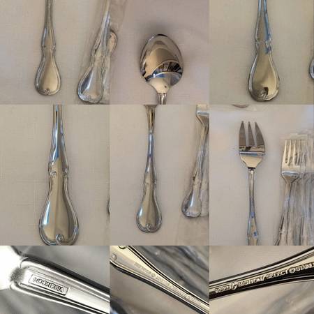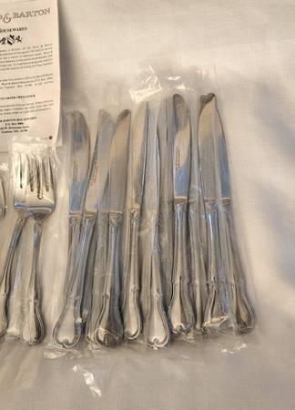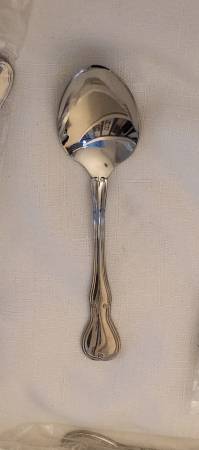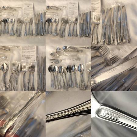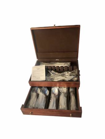 Reed and Barton select Stainless Flatware 53 Piece Set With Serving Pieces and box New Quality box has been used and has some scratches and marks from storage all Flatware has plastic inserts still. Everything in the pictures is included. Perfect for the holidays Thanksgiving Christmas dinner or special occasions. Made in Indonesia