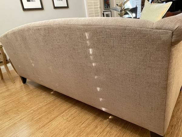 Sofa measures 77 long and 32 inches high at center back. In excellent and clean condition from a smoke and pet free home.