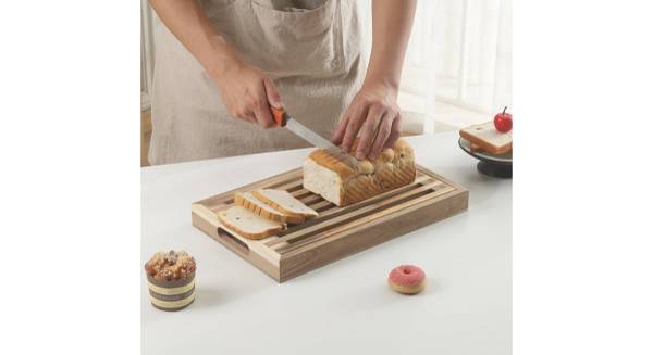 Mountain Woods Bread Cutting Board with Crumb Catcher for Serving Bread Slices