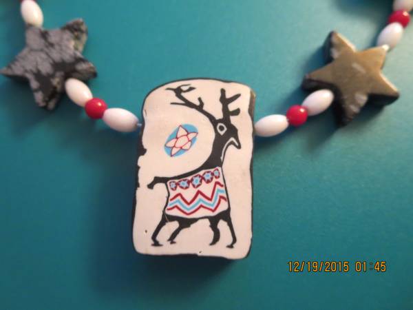 Very attractive reindeer necklace in red, black and white. Never worn and in excellent condition.