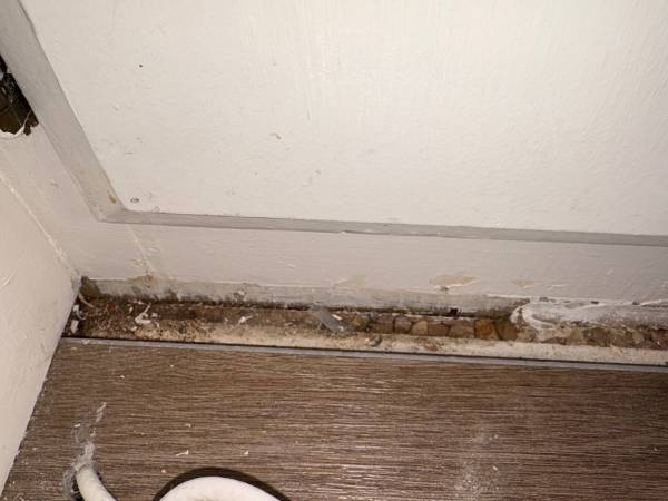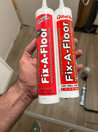 8. Some parts of the floors are uneven and need “fix a floor” filler shot into the space between the LVP and the subfloor. See photo.
