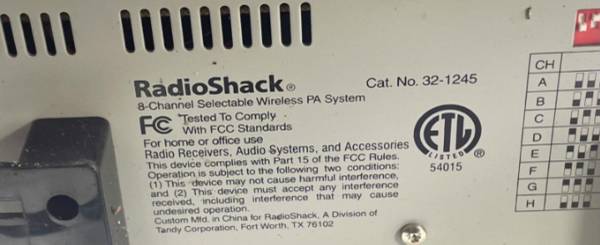 Radio Shack 8-Channel Wireless PA System. 16 Watts. Delivery Possible: San Diego/San Marcos/Vista/Escondido/Carlsbad