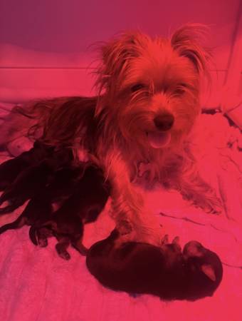 Only two puppies left, they will be small. Adorable and sweet yorkies. 9 weeks old, eating solid food. Rehoming fee Message me to schedule a time to come see them
